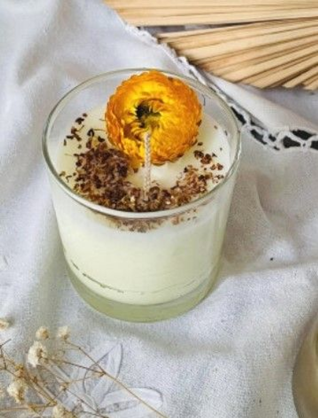 Apportez une touche de fraîcheur et de dynamisme à votre intérieur avec notre bougie parfumée énergisante au parfum de genêt. Fabriquée de manière artisanale, elle est joliment décorée d'une fleur séchée.